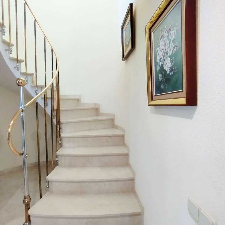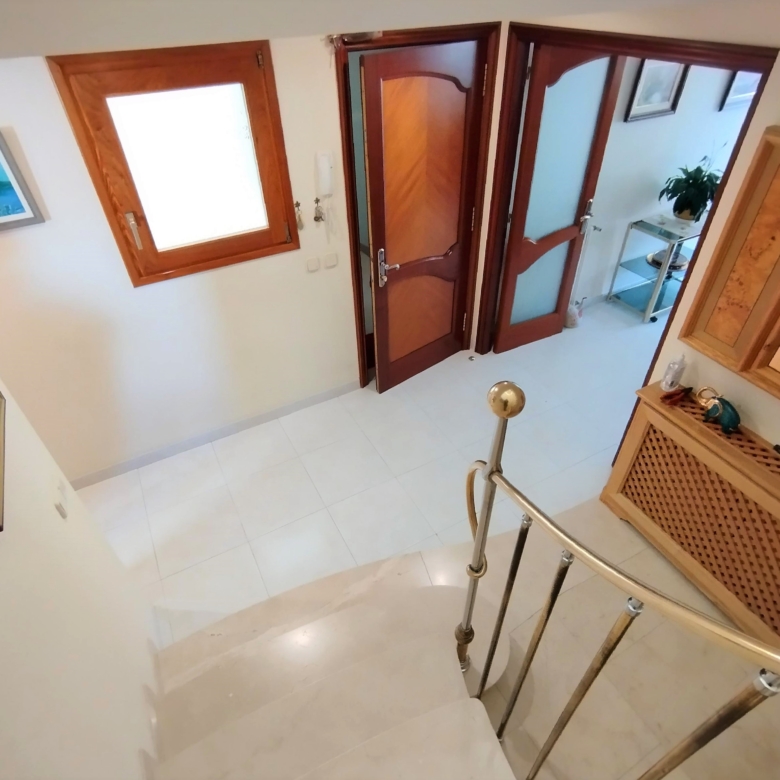 Amb una superfície total construïda de 342 m2 i ascensor, aquest edifici es composa d’un garatge de 84 m2 en la planta baixa (per a poder aparcar 3-4 cotxes), un pis de 92 m2 amb terrassa en la seva primera planta i un magnífic dúplex de 166 m2 amb terrassa solàrium en la seva segona planta i coberta.