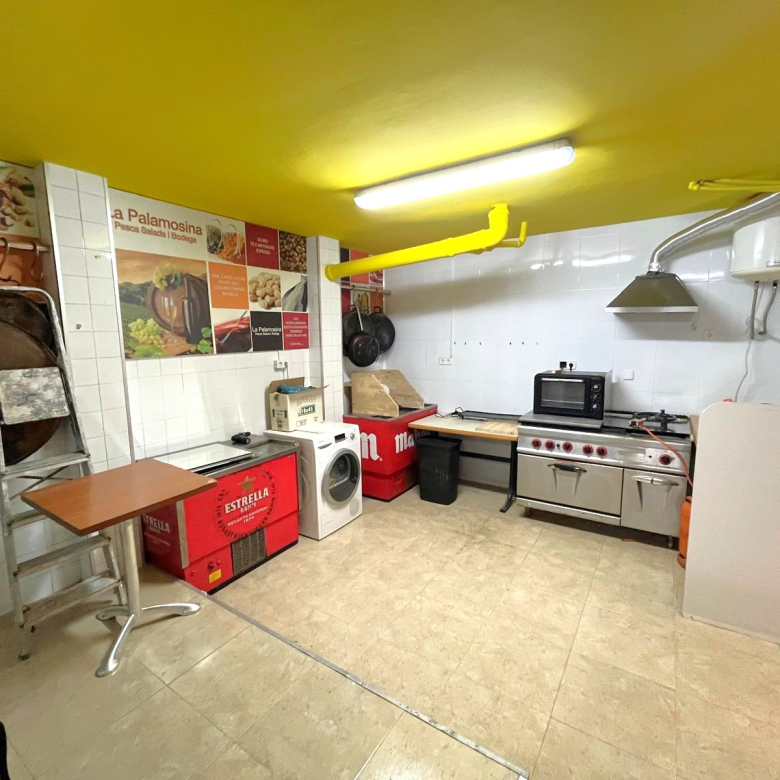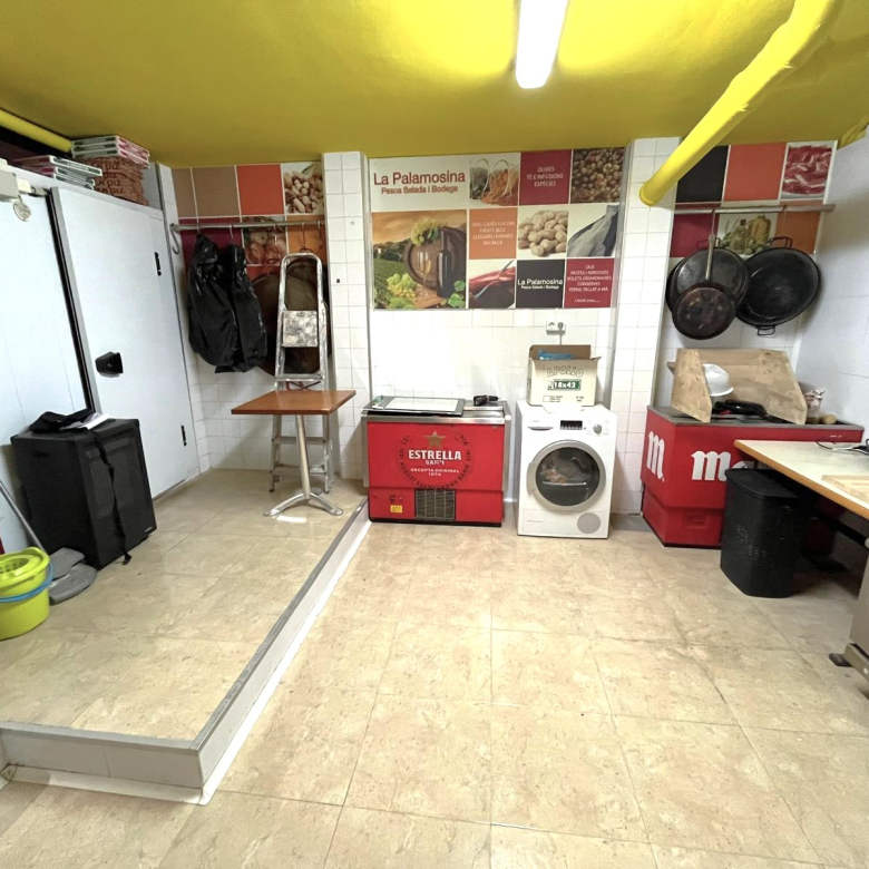 Local en venta en Palamós, totalmente equipado como negocio de panadería y tienda de comestibles (zona de atención al cliente con vitrina, expositor, estantes…, más zona de cocina con cámara frigorífica, cocina, congelador…).